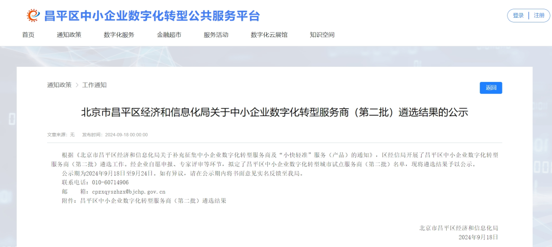 繼2024年7月入選“濟南市工業和信息化局正式公布了濟南市第二批中小企業數字化轉型試點城市服務商名單”之后,此次在北京市昌平區入選也標志著和創科技在數字化轉型領域的實力和成就再度得到了官方的高度認可。
