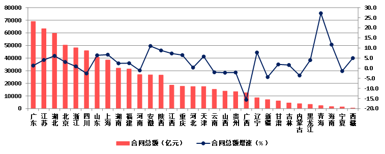 (四)廣東簽訂合同總額繼續排在榜首  9個地區出現負增長