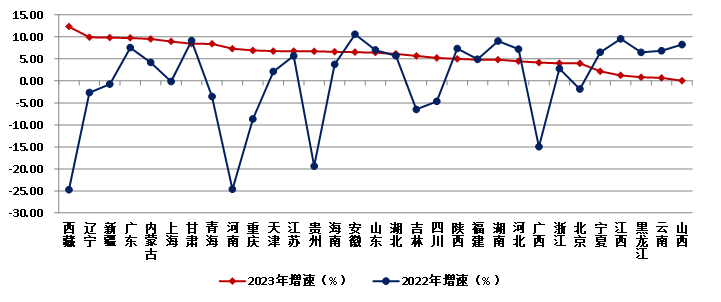 圖16  2022-2023年各地區建筑業總產值增速