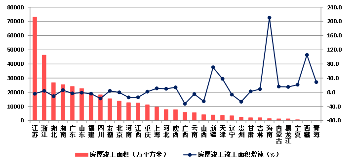 (八)25個地區房屋建筑施工面積下降  瓊、藏房屋建筑竣工面積增速顯著