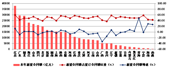 (五)江蘇新簽合同額超過3.7萬億元  14個地區出現負增長