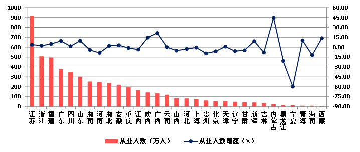 (七)15個地區從業人數減少  湖北勞動生產率領先