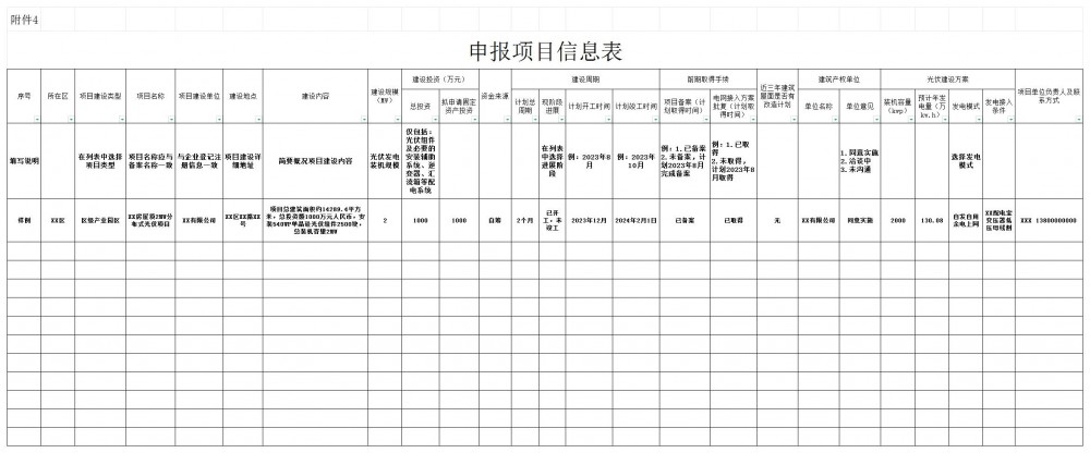 4. 申報項目信息表(光伏發電)