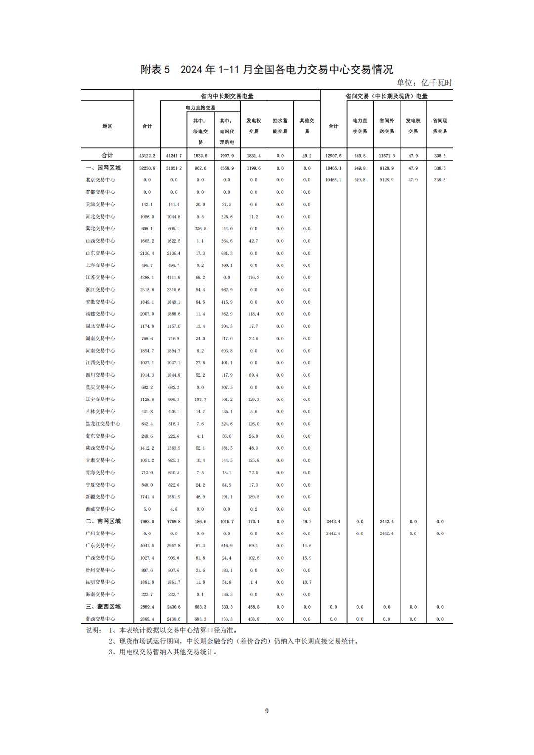 電力交易方面,在全國電力交易中心中,省內交易電量合計為43122.2億千瓦時,其中電力直接交易41241.7億千瓦時( 含綠電交易1832.5千瓦時、電網代理購電7907.9億千瓦時)。