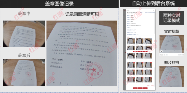 全程監控影像留痕:設備內置高清攝像頭,在每次蓋印動作觸發時,強制對文件內容進行拍照并錄制動態視頻,完整記錄用印人、用印文件、周邊環境等信息,所有影像資料實時上傳至云端安全存儲。