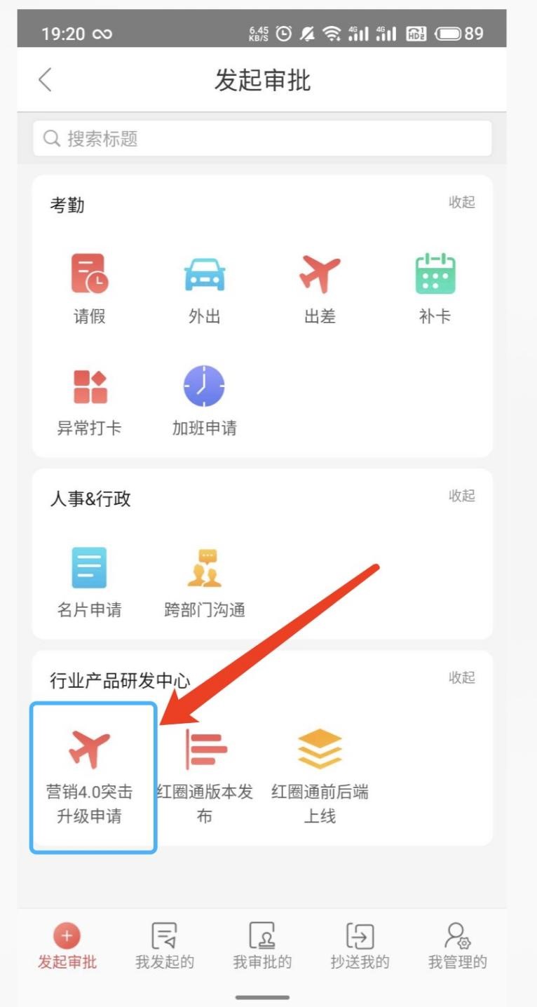 發起方式:紅圈通高級審批-------營銷4.0突擊升級申請模板